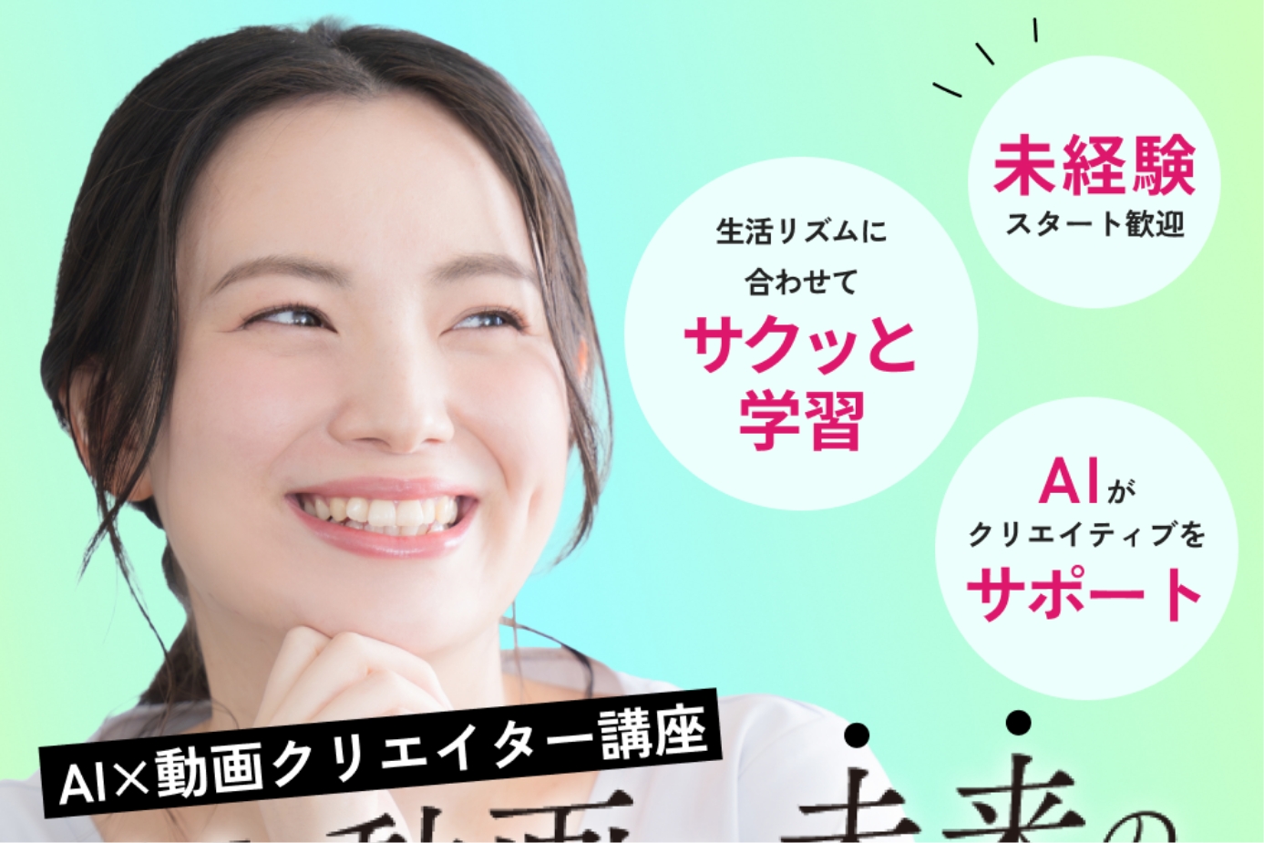 動画編集に加え、AIを駆使した効率的なSNS運用まで網羅!企画から投稿、分析まで一貫したスキルが身につくため、副業や即戦力のクリエイターを目指せます。講師の伴走サポートで、未経験でも安心です。