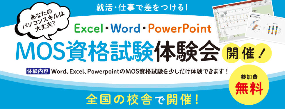 【MOS資格試験 無料体験会】全国の校舎で開催!