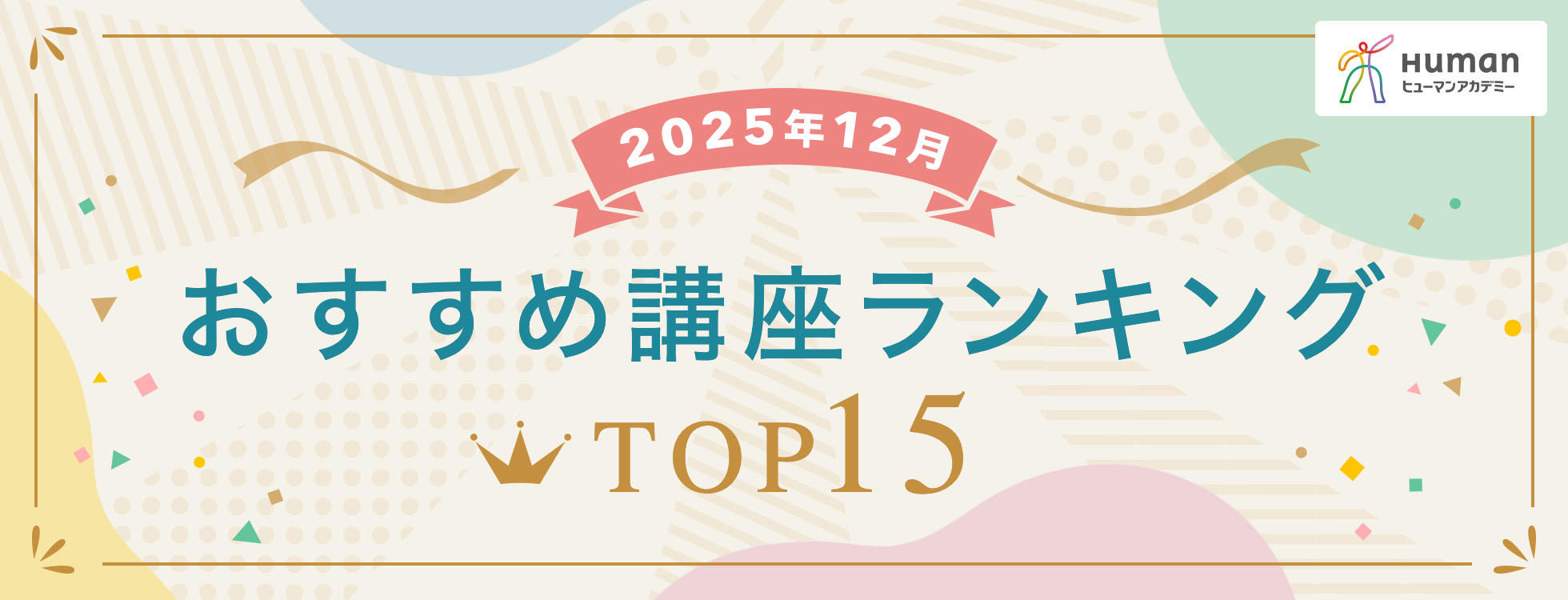 「資格取得・就転職の総合校 ヒューマンアカデミー」は、社会人向けスクールで提供している全300以上の講座のラインナップから、2025年12月のおすすめ講座ランキングTOP15をまとめました!
